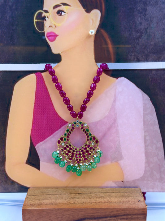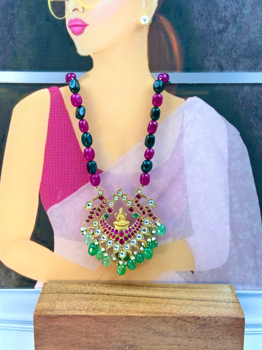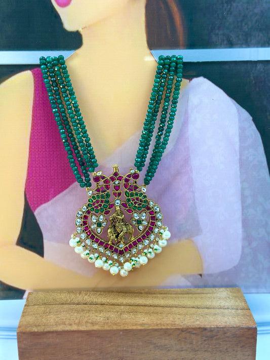 Multicolour Kundan Peacock Work & Centra Laxmi Green Beads Hanging