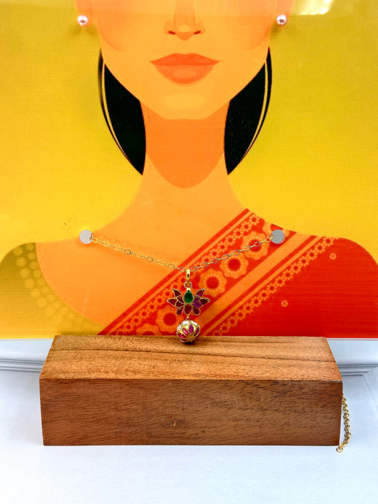 Green & Pink Kundan Lotus With Kundan Work Ball Hanging