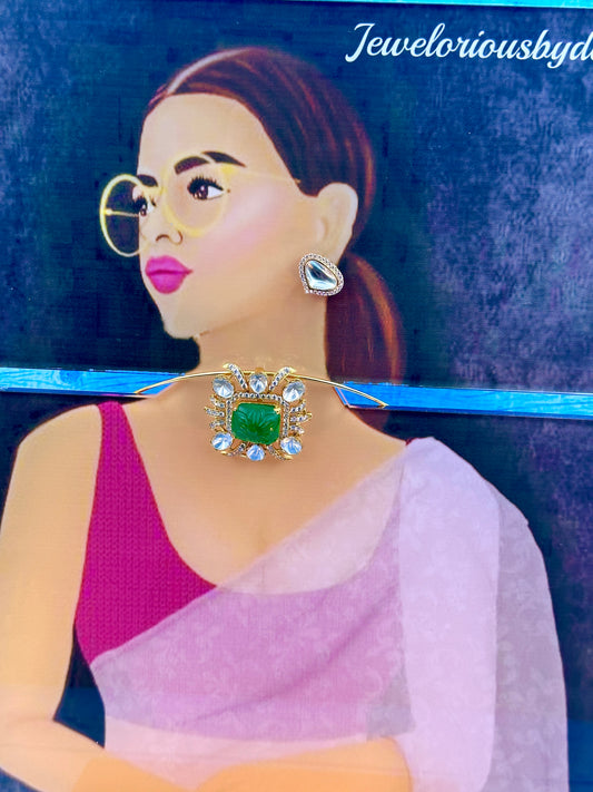 White Moissanite Stone With Big Centre Green Stone Pendant