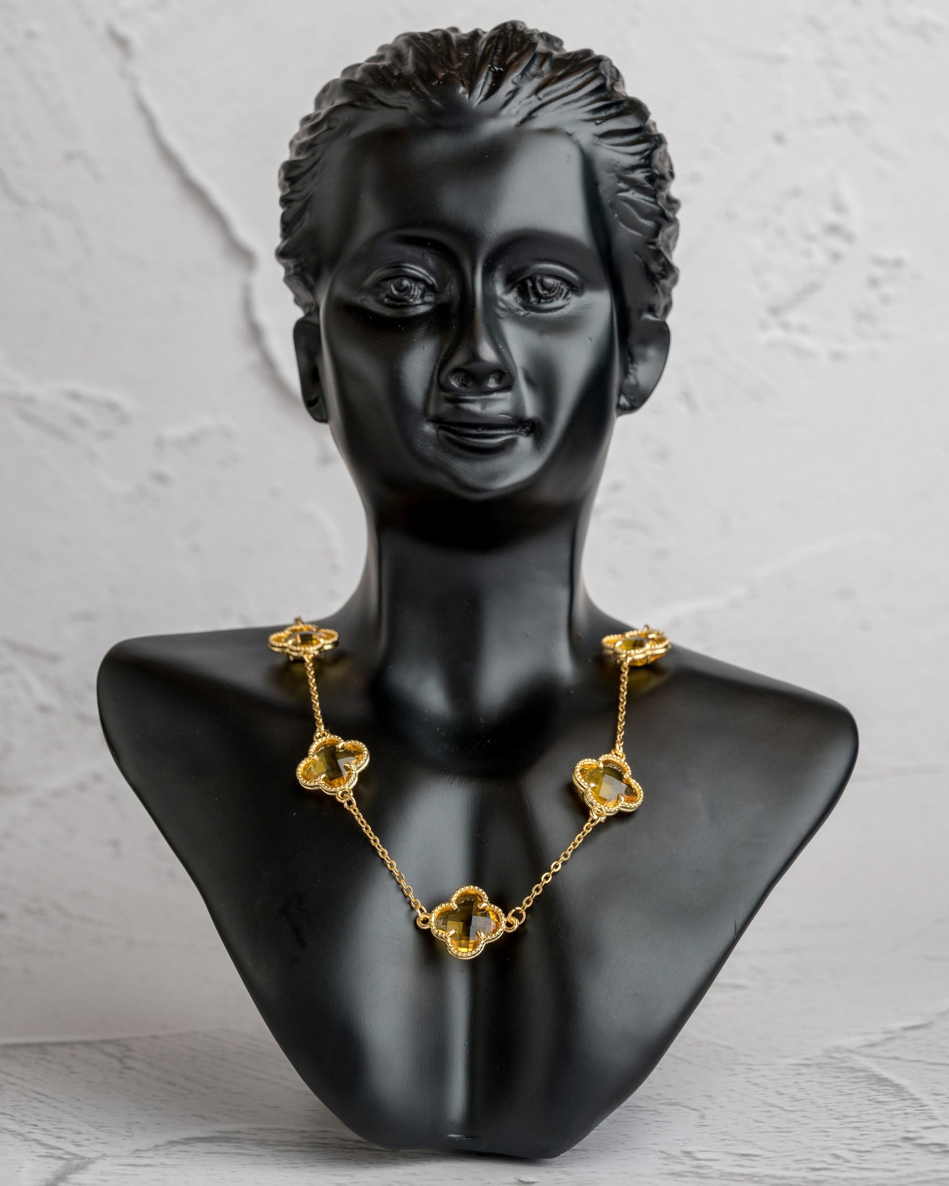 Big Yellow Clover Stone Golden Border With Gold Chain